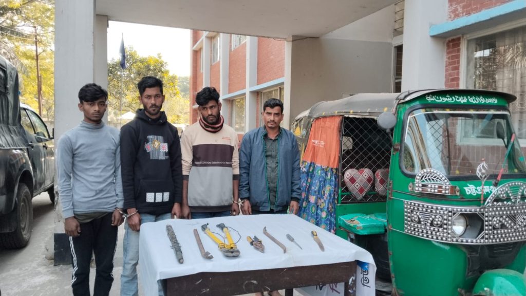 বিষয়টি নিশ্চিত করে থানার অফিসার ইনচার্জ (ওসি) মো. মনির হোসেন বলেন, চাতরী ইউনিয়নের কৈনপুরা মাষ্টারহাট সড়কের মিনু মেম্বারের বাড়ির সামনে থেকে গোপন অভিযানে দেশীয় অস্ত্র ও ডাকাতির সরঞ্জামসহ চারজনকে আটক করে থানায় নিয়ে আসা হয়।এবং আটককৃতদের বিরুদ্ধে আইনানুগ প্রক্রিয়া শেষে আদালতে প্রেরণ করা হয়েছে।