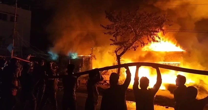 গত ০৮ মার্চ রাতে দীঘিনালার বোয়ালখালীর লারমা স্কয়ার বাজারে আগুনে পুড়ে যায় ১২টি দোকান।