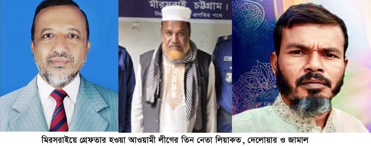গ্রেফতারকৃতরা হলো মিরসরাই উপজেলা আওয়ামী লীগের সদস্য লিয়াকত আলী (৫৫), মিরসরাই পৌরসভার ৮ নং ওয়ার্ড আওয়ামী লীগের সহ-সভাপতি হাফেজ দেলোয়ার হোসেন (৬০) ও হিঙ্গুলী ইউনিয়নের ২ নং ওয়ার্ড আওয়ামী লীগের সাধারণ সম্পাদক জামাল উদ্দিন সওদাগর (৪৫)। গ্রেফতাকৃদের মধ্যে দুজনকে কোর্টে প্রেরণ করা হয়েছে।