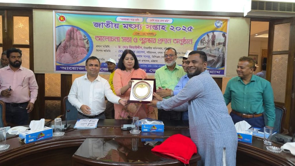 চট্টগ্রাম জেলার শ্রেষ্ঠ মৎস্য উৎপাদনকারী হিসেবে পুরস্কার পেয়েছেন মিরসরাই উপজেলার মো. কামরুল হোসেন। সোমবার (১৮ আগস্ট) জাতীয় মৎস্য সপ্তাহ উপলক্ষে চট্টগ্রাম বিভাগীয় কমিশনার ড. মো. জিয়া উদ্দিন ও মৎস্য অধিদপ্তরের চট্টগ্রাম বিভাগীয় পরিচালক মো. আনোয়ার হোসেন এই পুরস্কার তুলে দেন।