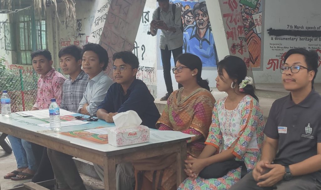 চট্টগ্রাম বিশ্ববিদ্যালয়ের পাঁচ শিক্ষার্থী খাগড়াছড়ির গিরিফুল এলাকা থেকে অপহৃত হওয়ার ঘটনায় আজ (১৯ এপ্রিল) বিকেল ৪টায় বিশ্ববিদ্যালয়ের কেন্দ্রীয় ছাত্র সংসদ (চাকসু) ভবনের সামনে আদিবাসী শিক্ষার্থীদের উদ্যোগে এক সংবাদ সম্মেলনের আয়োজন করা হয়।