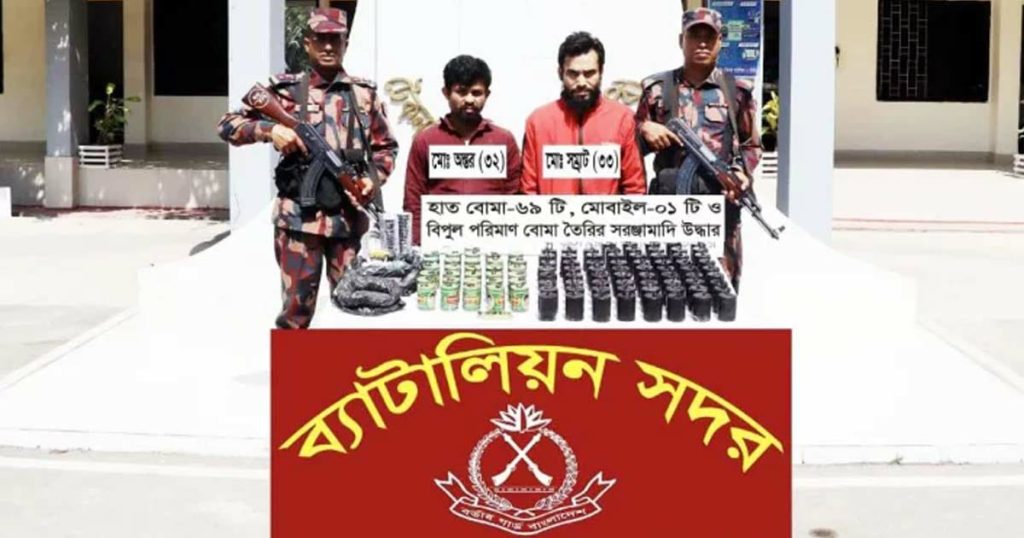টেকনাফ বিজিবি অধিনায়ক লেফটেন্যান্ট কর্নেল আশিকুর রহমান জানান, জরাজীর্ণ একটি বাড়িতে বোমা তৈরির সংবাদ পেয়ে অভিযানে যায় বিজিবি। প্রথমে বিজিবির সদস্যরা বাড়িটিকে ঘিরে ফেলে। প্রায় তিন ঘণ্টার অভিযানে ঘরের ভেতর থেকে ৬৯টি হাতবোমা, ১ দশমিক ৬ কেজি সালফার, ১ দশমিক ৩ কেজি লালা, ৩১টি জর্দার কৌটা, ২২০ গ্রাম গুনা তার এবং ১টি প্লাসসহ দুজন দুষ্কৃতকারীকে আটক করা হয়। এসময় বিজিবির উপস্থিতি টের পেয়ে বাড়ির আঙিনায় অবস্থানরত অপর দুই ব্যক্তি পালিয়ে যায়।