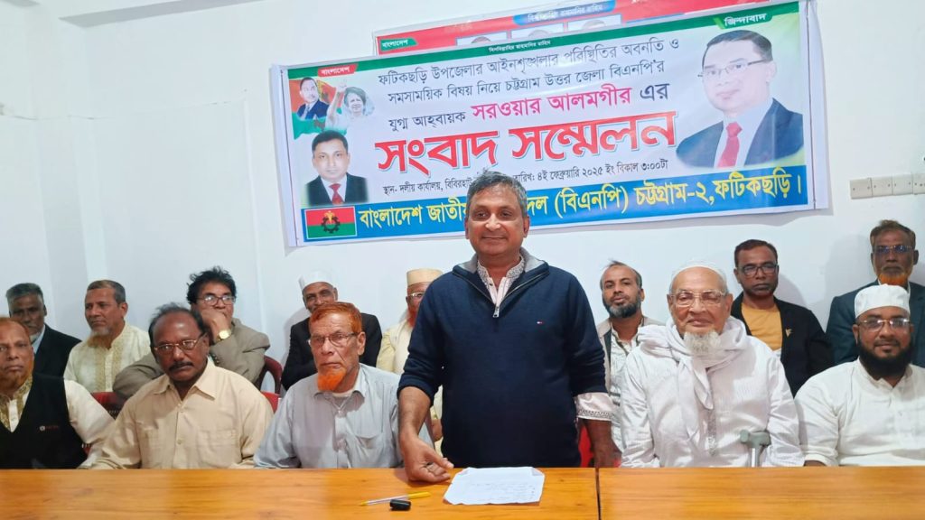 ফটিকছড়ি উপজেলার আইনশৃঙ্খলা পরিস্থিতি অবনতি ও সমসাময়িক বিষয় নিয়ে সংবাদ সম্মেলন করেছে চট্টগ্রাম উত্তর জেলা বিএনপির যুগ্ম আহবায়ক সরওয়ার আলমগীরের।