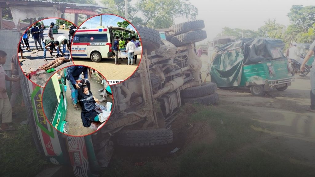 প্রত্যক্ষদর্শী আবু সাঈদ খোকনের বর্ণনায়, একটি ব্যাটারিচালিত অটোরিক্সাকে এড়াতে গিয়ে সিএনজি চালিত অটোরিক্সা বিপরীত দিক থেকে আসা পিকআপের সাথে ধাক্কা লাগে। সংঘর্ষের ফলে সিএনজিটি উল্টে যায়। স্থানীয়রা অভিযোগ করেন, মহাসড়কে ব্যাটারিচালিত অটোরিক্সা চলাচল বন্ধ না করলে এমন দুর্ঘটনা অব্যাহত থাকবে।