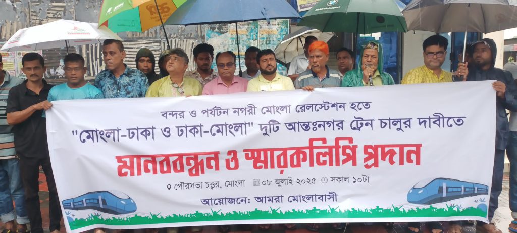মোংলা-ঢাকা আন্তঃনগর ট্রেন চালুর দাবিতে মানববন্ধন কর্মসূচি