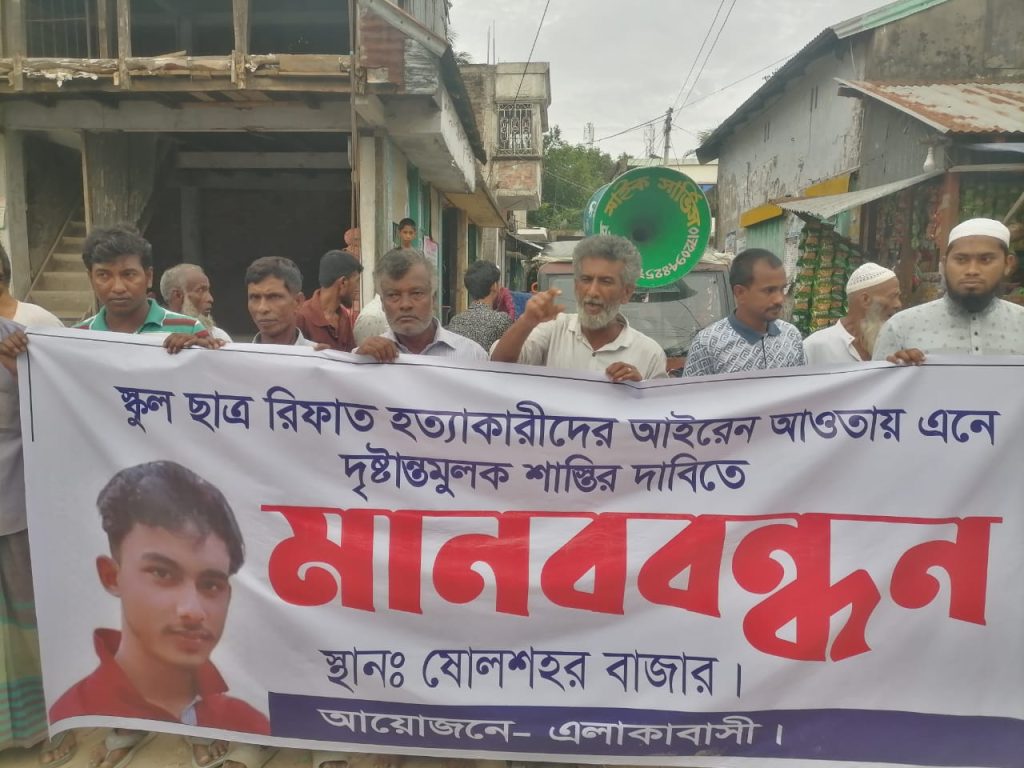 মানববন্ধনে অংশ নেন স্থানীয় শিক্ষাপ্রতিষ্ঠানের শিক্ষক-শিক্ষার্থী, ব্যবসায়ী, পেশাজীবী, তরুণ সমাজ ও সুশীল সমাজের নেতৃবৃন্দ। ব্যানার, ফেস্টুন ও স্লোগানে তারা রিফাত হত্যাকাণ্ডের তীব্র নিন্দা জানান এবং দ্রুত বিচার কার্যক্রম শুরুর দাবি তোলেন।