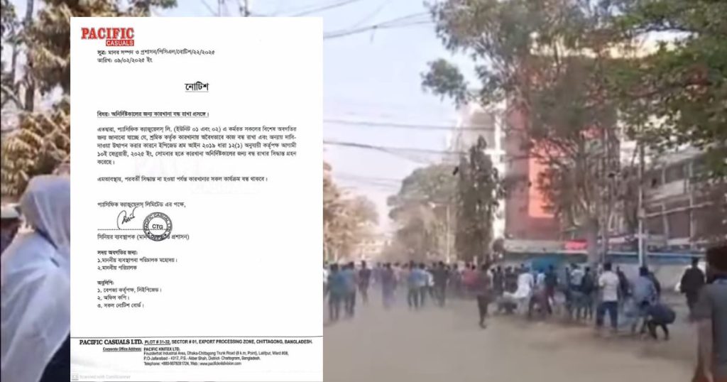 রবিবার (৯ ফেব্রুয়ারি) সিইপিজেডে কারখানাটির ইউনিট-১ ও ইউনিট-২ বন্ধ ঘোষণা করে কর্তৃপক্ষ।