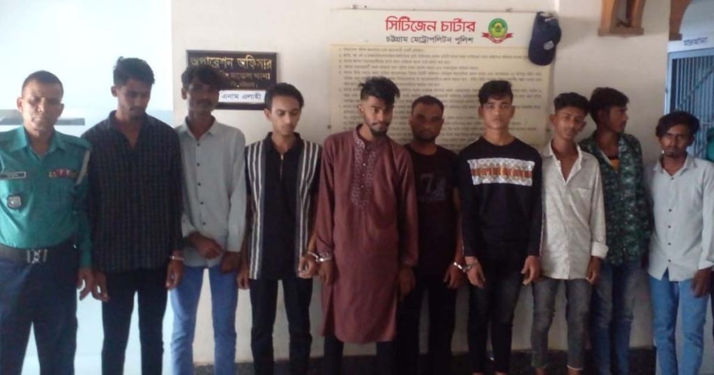 গ্রেফতাররা হলেন— ডবলমুরিং মডেল থানার প্রদীপ রঞ্জন চক্রবর্তী (৬১), মো. সোহেল (২৪), জীবন হোসেন (১৯), মো. রানা (২০), তুহিন (২২), লোকমান (২২), আজিজুল হাকিম (৩৭), আইনের সহিত সংঘাতে জড়িত শিশু মো. আলী আরাফাত আকাশ (১৬), মো. হৃদয় (২১), মো. আব্দুর রশিদ প্রকাশ নসু (৩৩)। ইপিজেড থানার আসামী মো. রিয়াদ (৩০), মো. সাগর (২০)। হালিশহর থানার আসামী ইউনিয়ন ছাত্রলীগের সহ-সভাপতি ইমরান হোসেন (২৮), মো. মিনহাজ আহমেদ প্রকাশ মিজান (২০), মো. আলাউদ্দিন আলো (২৬), মো. নুরুল আলম প্রকাশ সুমন হাওলাদার (৩৫)। খুলশী থানার আসামী নাজিম উদ্দিন (৫৫), মো. রোমান প্রকাশ নোমান (১৮), মো. নজরুল ইসলাম প্রকাশ রনি (৩১)। পতেঙ্গা মডেল থানার আসামী মো. আলমগীর হোসেন (৩৩)। বন্দর থানার আসামী মো. ইলিয়াছ প্রকাশ বাদশা (৪০)। বায়েজিদ বোস্তামী থানার আসামী মো. সাজ্জাদ হোসেন প্রকাশ বুড়ির নাতী (৩০), মো. ছাইদুল আজম প্রকাশ আসিফ (২৪), মো. আব্দুর রহিম (২২)। কর্ণফুলী থানার আসামী মো. শওকত আলী (৩৩)। চান্দগাঁও থানার আসামী মো. ওয়ালিম (৩২), সাইফুর রহমান সৈকত (৩৫), মো. রিয়াজ (২১), মো. আলী (৩০), তারা (২৪), পারভীন আক্তার (১৮), মো. মিজান (২৬), মো. মোস্তাফিজুর রহমান (২৭), ইমন দাস (২৭), দ্বীপ বড়ুয়া (২২), মো. সুরাজ (২১), মো. জুবাইদুল আলম (২১)। পাহাড়তলী থানার আসামী পাহাড়তলী থানা যুবলীগের নেতা মো. সাগর (২৬), মো. সাজ্জাদ হোসেন সুমন (২৮)। আকবরশাহ্ থানার আসামী মো. সুমন হোসেন (২২), মো. নুর হোসেন (২৭), মো. মহিন উদ্দিন প্রকাশ এমআই (২৫), সাব্বির হোসেন সৈকত (২৪), মো. সাহিদুর রহমান আরবি প্রকাশ আরিফ (২৫), সাইফুল ইসলাম (১৮)। বাকলিয়া থানার আসামী তানভির উদ্দিন বাবু (২৮), মো. শরীফ উদ্দিন (২৭)। চকবাজার থানার আসামী মো. রাব্বি (২১), মো. জাহাঙ্গীর (৪২), মোহাম্মদ তৌহিদ হাসান রানা (২৮)। সদরঘাট থানার আসামী মো. ফয়েজ প্রকাশ রুবেল (৩০) ও কোতোয়ালী থানার আসামী মো. সালাউদ্দিন (৩০), মো. মামুন (৩৯) অংখ্যাই মারমা (৩০)।