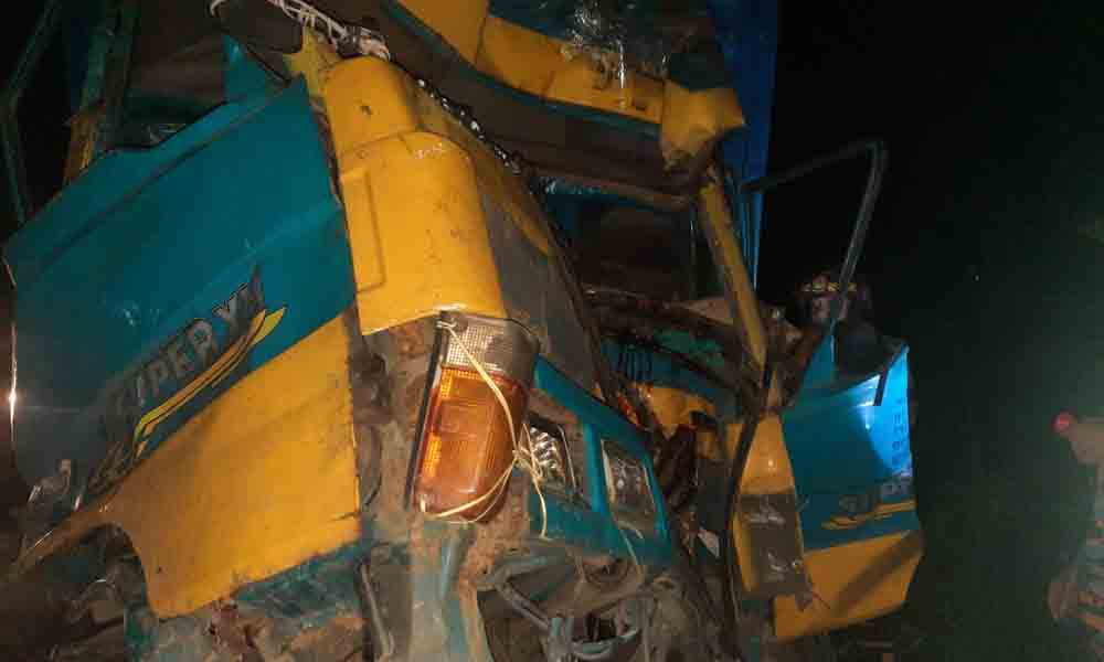 এ সময় গাড়িটি নিয়ন্ত্রণ হারিয়ে সড়কের পাশে থাকা একটি গাছের সাথে ধাক্কা লেগে কাভার্ডভ্যানটির সামনের অংশ দুমড়ে মুচড়ে যায়।