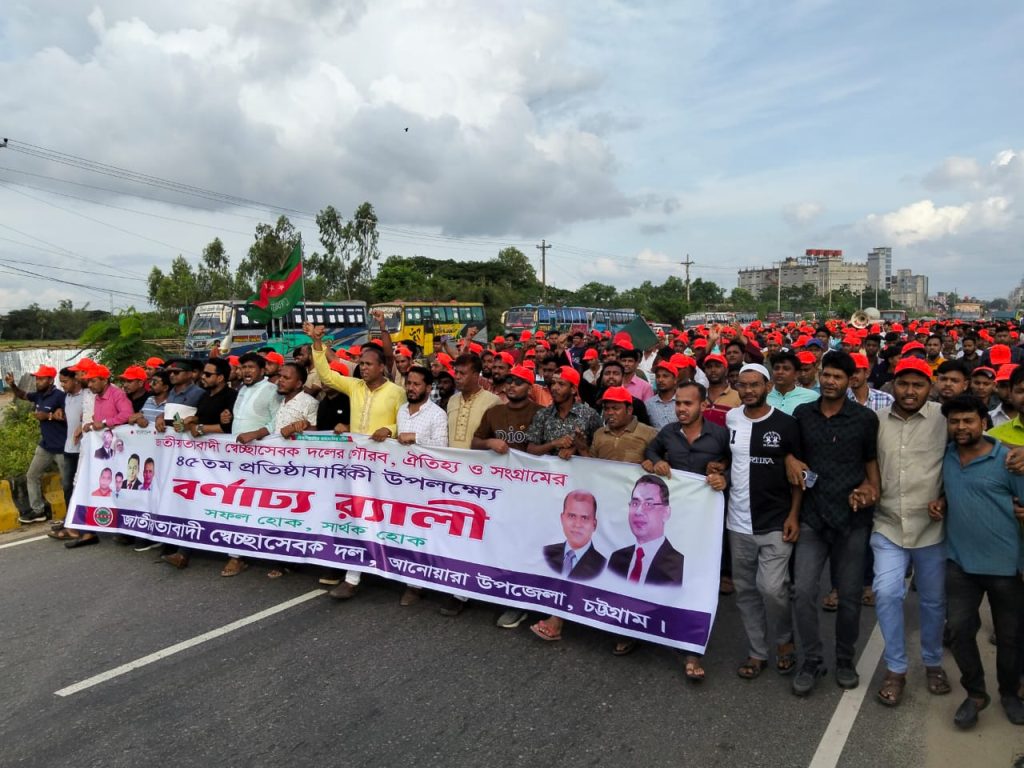 গৌরব, ঐতিহ্য ও সংগ্রামে আনোয়ারায় বাংলাদেশ জাতীয়তাবাদী স্বেচ্ছাসেবক দলের ৪৫তম প্রতিষ্ঠাবার্ষিকী উপলক্ষে আনন্দ মিছিল ও সমাবেশ অনুষ্ঠিত হয়েছে।