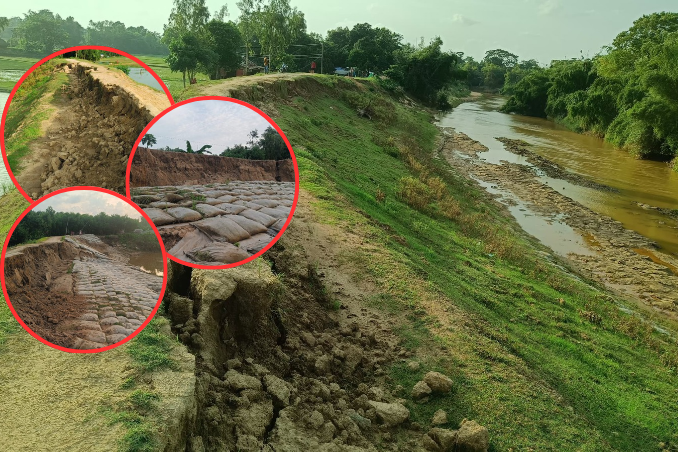 ১৬ জুলাই, রবিবার সরেজমিনে গিয়ে দেখা গেছে, ক্ষতিগ্রস্ত বাঁধে বড় বড় ফাটল তৈরি হয়েছে। পানি উন্নয়ন বোর্ডের দেওয়া জিও ব্যাগ বাঁধের গোড়া থেকে সরে গেছে। ফলে নদীর পানির তোড়ে বাঁধ আরও দুর্বল হয়ে পড়েছে।