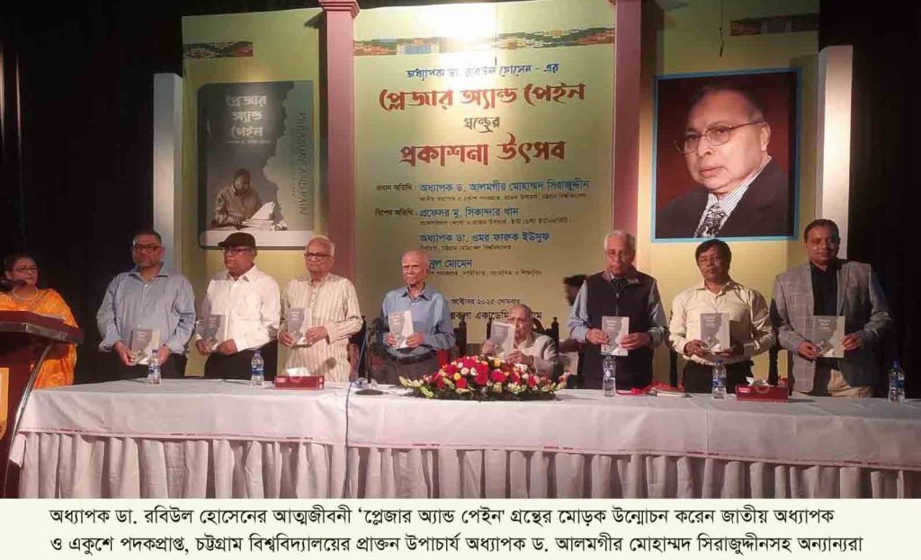 চট্টগ্রাম চক্ষু হাসপাতাল ও প্রশিক্ষণ কেন্দ্র, পাহাড়তলী, চট্টগ্রামের ম্যানেজিং ট্রাস্টি অধ্যাপক ডা. রবিউল হোসেনের আত্মজীবনী ‘প্লেজার অ্যান্ড পেইন’ গ্রন্থের প্রকাশনা উৎসব অনুষ্ঠিত হয়েছে সোমবার (২০ অক্টোবর) বিকেলে চট্টগ্রাম জেলা শিল্পকলা একাডেমির গ্যালারী হলে।