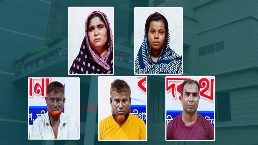 আটককৃতরা হলো— তৃতীয় লিঙ্গের শ্রাবন্তী (৩৪), শ্রাবন্তীর সহযোগী মিতু আক্তার কাজল (১৯), আমির হোসেন (৩৫), মো. জামাল (৫২) ও আব্দুল জলিল (৫৫)।