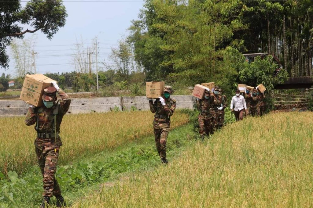 করোনার সংক্রমণ ঠেকাতে পর্যটন নগরী কক্সবাজারসহ দেশব্যাপী বিভিন্ন জেলায় চলছে লকডাউন। সরকারের ৩১ দফা নির্দেশনা বাস্তবায়নে সশস্ত্র বাহিনীর সদস্যরা গত ২৪ মার্চ থেকে অবিরাম কাজ করছেন। কক্সবাজার জেলা এবং দক্ষিণ চট্টগ্রামের চারটি উপজেলাকে করোনা মুক্ত রাখতে জনসচেতনতামূলক কার্যক্রমসহ বিভিন্ন মানবিক কর্মকাণ্ডে নিরলস কাজ করে চলেছেন ১০ পদাতিক ডিভিশনের সেনাসদস্যরা।