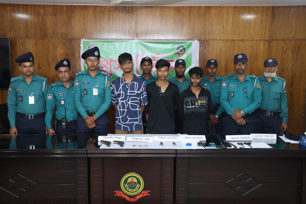 গ্রেপ্তার তিনজন হলেন—মোহাম্মদ মিল্লাত (২৪), মোহাম্মদ আবুল হাসনাত ফাহিম (২০) এবং মো. রুবেল (২৬)। তাদের বিরুদ্ধে ডাকাতি, অস্ত্র ও মাদক আইনে একাধিক মামলা রয়েছে বলে জানিয়েছে পুলিশ।