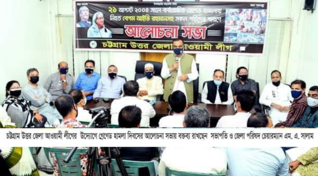 শনিবার নগরীর দোস্ত বিল্ডিং-এ ২১শে আগস্ট বর্বরোচিত গ্রেনেড হামলা দিবসে চট্টগ্রাম উত্তর জেলা আওয়ামী লীগ আয়োজিত আলোচনা সভায় সভাপতির বক্তব্যে তিনি এসব কথা বলেন।