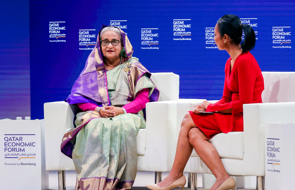 অনুষ্ঠান সঞ্চালনা করেন কাতার ইকোনোমিক ফোরামের এডিটর অ্যাট লার্জ হাসলিন্ডা আমিন। সঞ্চালক এই অনুষ্ঠানে প্রধানমন্ত্রী শেখ হাসিনাকে অর্থনীতি-রাজনীতিসহ বিভিন্ন বিষয়ে প্রশ্ন করেন, প্রধানমন্ত্রী তার জবাব দেন। প্রধানমন্ত্রী শেখ হাসিনার আগে-পরে অন্যান্য দেশের সরকার ও রাষ্ট্রপ্রধানদের সঙ্গেও এই ‘কথোপকথন’ হয় এবং আলাদা আলাদা সঞ্চালকরা বিভিন্ন বিষয়ে তাদের প্রশ্ন করেন।