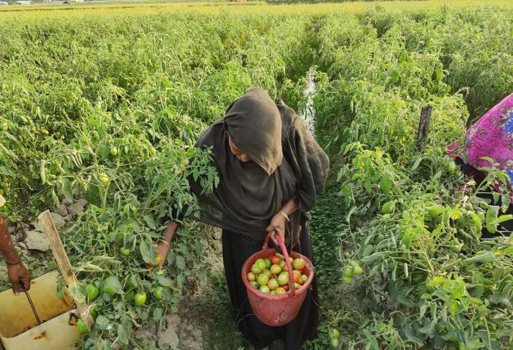 সরেজমিনে গিয়ে দেখা যায়, উপজেলার গণ্ডামারা, সরল, শিলকূপ, চাম্বল বৈলছড়ি, পুইঁছড়ি, বাঁহারছড়া ও খানখানাবাদ উপকূলীয় এলাকাজুড়ে টমেটো আর টমেটো ক্ষেত। গ্রামের প্রতিটি ধানক্ষেত এখন টমেটো ক্ষেতে রুপ নিয়েছে। চারদিকে প্লাস্টিকের কালো কাগজে মোড়ানো টমেটো ক্ষেত গুলোতে ঢুকে দেখা যায়। সারি সারি গাছ। প্রতিটি গাছে ঝুলছে টমেটো। প্রতিটি গাছের মাঝখানে দুই ফিটের দুরুত্ব। একটু এদিক-সেদিকও নয় সব কিছু যেন এক সমান। আবার প্রতিটি গাছ মাটি থেকে চার থেকে পাঁচ ফিট উচু। এই যেন চাষিদের হাতে বুনা কারুকাজ।