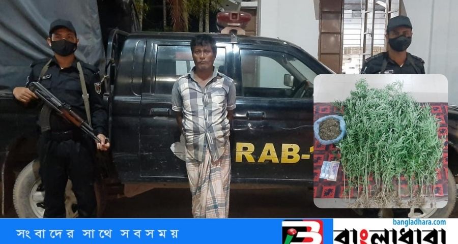 গ্রেফতার মোস্তাক আহমদ (৫০) ঐ এলাকার মৃত ফজল আহমদের ছেলে। এসময় তার চাষ করা গাঁজা ক্ষেত থেকে ২৪ টি গাঁজা গাছের চারা, ৪ শত গ্রাম শুকনো গাঁজা জব্দ করা হয়।