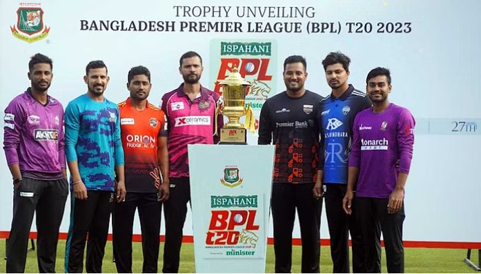 ট্রফির সামনে রেখে দাঁড়িয়ে বিপিএলের অধিনায়ক-প্রতিনিধিরা। ফটোগ্রাফাররা তাদের বলেন, হাত দিয়ে ট্রফিটি ধরতে। কিন্তু কেউই এগিয়ে গিয়ে ধরেননি। তখন সিলেট স্ট্রাইকার্সের অধিনায়ক মাশরাফি বিন মুর্তজা বললেন, ‘কেউ (ট্রফি) ধরতে সাহস পাচ্ছে না।’ হাসির রোল বয়ে যায় মিরপুরের মাঠে। আজ শুক্রবার উদ্বোধনী ম্যাচে দুপুর আড়াইটায় মুখোমুখি হবে সিলেট স্ট্রাইকার্স ও চট্টগ্রাম চ্যালেঞ্জার্স। সন্ধ্যায় দ্বিতীয় ম্যাচে লড়বে কুমিল্লা ভিক্টোরিয়ান্স ও রংপুর রাইডার্স।