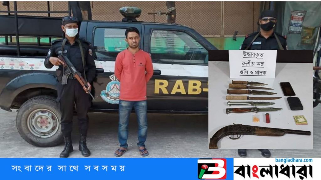 মঙ্গলবার (২ মার্চ) রাতে র্যাবের একটি বিশেষ দল উপজেলার চাতরী ইউনিয়নের উত্তর চাতরী এলাকায় অভিযান চালিয়ে তাকে প্রেফতার করা হয়। এসময় তার কাছ থেকে একটি ওয়ানশুটার গান, এক রাউন্ড গুলি, ছয়টি চাকু এবং ৩৫ পিস ইয়াবা উদ্ধার করা হয়।