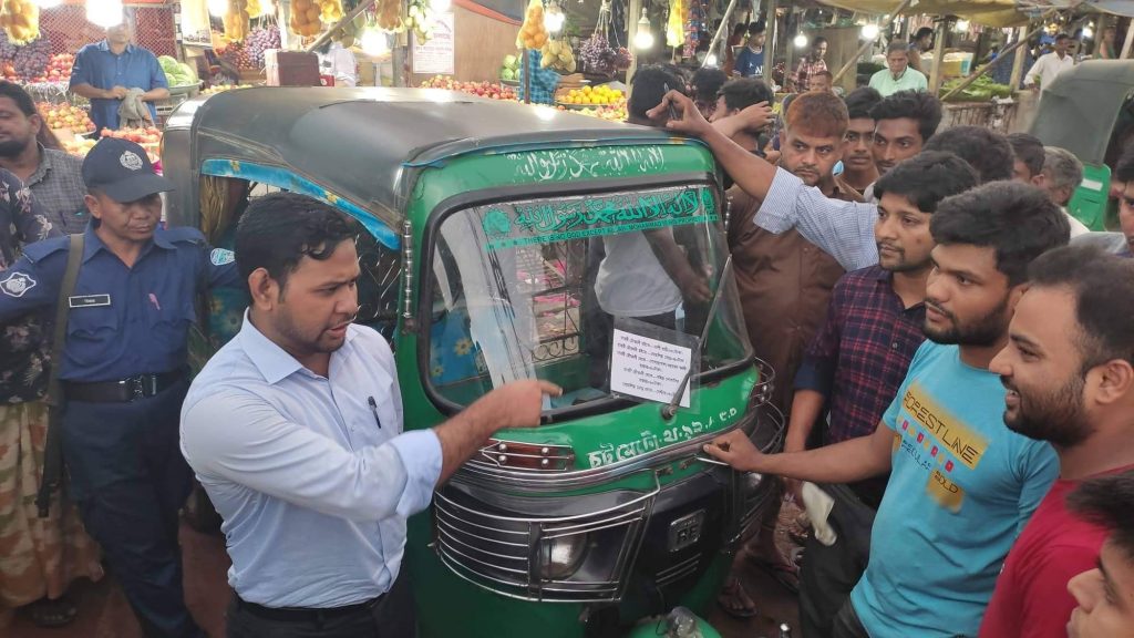 জানা যায়, সরকারি নির্দেশনা অমান্য করে যত্রতত্র পার্কিং করা, মিটার ব্যবহার না করে অতিরিক্ত সিএনজি ভাড়া আদায়, বাসের ভাড়ার তালিকা না রেখে যাত্রীদের থেকে অতিরিক্ত বাস ভাড়া আদায় ও সড়ক পরিবহন আইনের অন্যান্য নির্দেশনা অমান্য করে যানচালনার জন্য সড়ক পরিবহন আইন ২০১৮ এর ৬৬ ও ৮০ ধারায় ৮টি মামলায় ৮ জন চালককে ১০ হাজার টাকা অর্থদণ্ড প্রদান করা হয়।