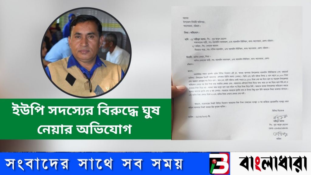 আনোয়ারা উপজেলার বারখাইন ইউনিয়নের ৫ নং ওয়ার্ডের ইউপি সদস্য সদস্য জসীমের বিরুদ্ধে প্রধানমন্ত্রীর উপহারের ঘর দেয়ার কথা বলে হতদরিদ্রদের কাছ থেকে জনপ্রতি ১২ হাজার টাক ঘুষ নেয়ার অভিযোগ পাওয়া গেছে। এ ব্যাপারে ভুক্তভোগীরা উপজেলা নির্বাহী কর্মকর্তা (ইউএনও) বরাবর লিখিত অভিযোগ দায়ের করেছেন।