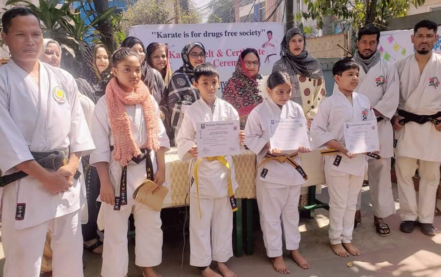 স্কুলের প্রিন্সিপাল হুসনুল কামরাইন খান প্রধান অতিথি হিসেবে উপস্হিত থেকে ছাত্র-ছাত্রী দের মাঝে কারাতে বেল্ট ও সনদ প্রদান করেন।