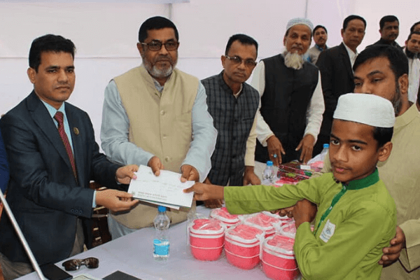 আলোচনা সভা শেষে কারিগরি মাদ্রাসা থেকে প্রশিক্ষণ প্রাপ্ত ১৫ জন নারী শিক্ষার্থীকে ১৫টি সেলাই মেশিন এবং ক্রীড়া প্রতিযোগিতায় বিজয়ী শিক্ষার্থীদের হাতে পুরস্কার তুলে দেওয়া হয় অতিথিবৃন্দ।