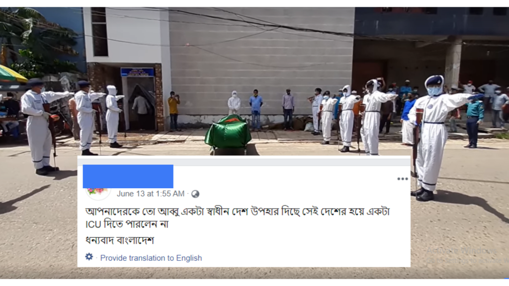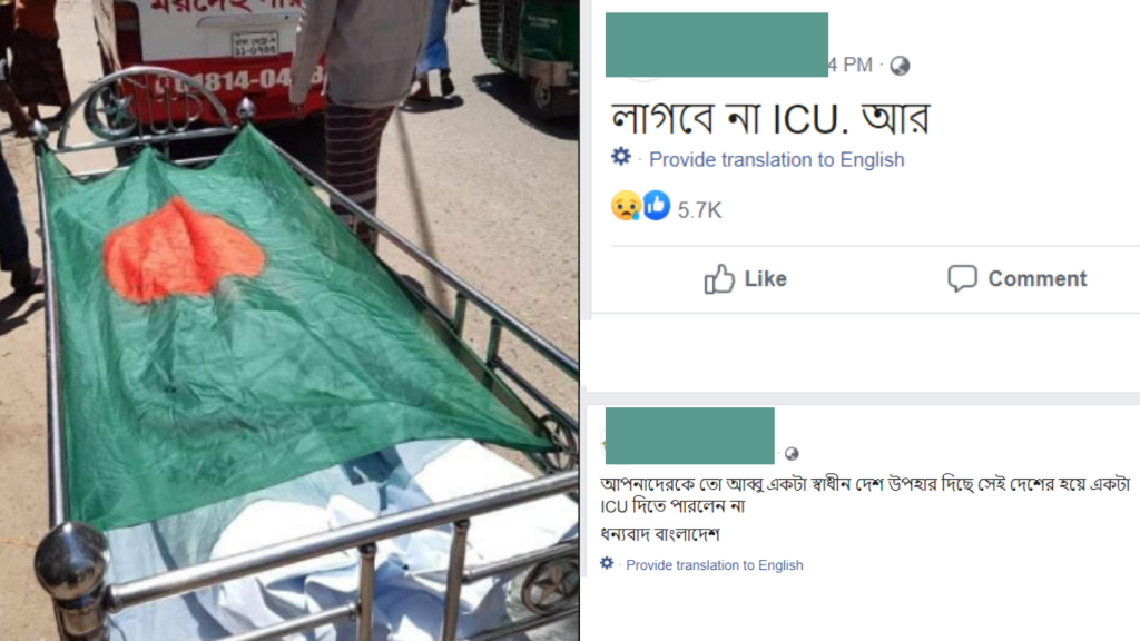 গত ১২ জুন সারা দিনের সমস্ত চেষ্টা করেও স্বজনদের চোখের সামনেই এই মুক্তিযোদ্ধা মানুষটির মৃত্যুদৃশ দেখতে হয়েছে স্বজনদের। মুক্তিযোদ্ধার কন্যারও জানা হয়ে গেলো- তার বাবাকে আর ফেরানো যাবে না। এমনকি অভিমান করে সামাজিক যোগাযোগ মাধ্যম ফেসবুকে লিখেছেন, ‘আইসিইউ আর লাগবে না।’