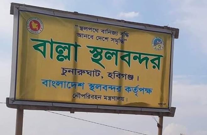 জেলার চুনারুঘাট উপজেলার বাল্লা স্থলবন্দর আমদানি-রপ্তানিতে নতুন সম্ভাবনার দ্বার খুলে দেবে। স্থলবন্দরে আধুনিকায়নের কাজ দ্রুত গতিতে এগিয়ে চলেছে। ২০২৩ সালের ৩০ জুনে কাজ শেষ হওয়ার কথা থাকলেও মে মাসের মধ্যেই কাজ শেষ হয়ে যাবে বলে আশাবাদ ব্যক্ত করেছেন কতৃপক্ষ। ইতোমধ্যে বাউন্ডারির কাজ শেষে অবকাঠামোগত উন্নয়ন কাজও ৭৫ শতাংশ সম্পন্ন হয়েছে।