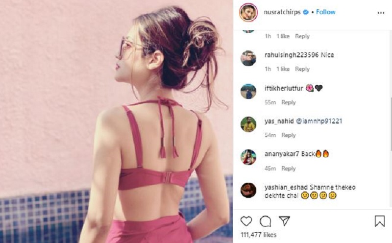 চোখে বেঁধার মতো আপত্তিকর মন্তব্যও আছে অনেক। যদিও যার ছবি দেখে নেট পাড়ার পড়শিদের ঘুম উড়েছে সেই নুসরাতের কিন্তু এ সব নিয়ে একটুও মাথাব্যথা নেই। উল্টো ছবিতে ফলাও করে ক্যাপশন দিয়েছেন, ‘আমাকে পড়তে চেষ্টা করো না। স্নাতক হতে পারবে না!’