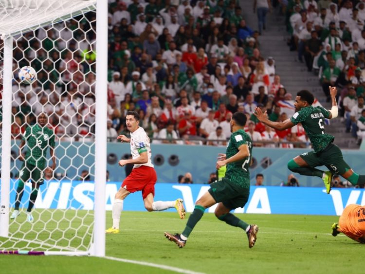 পিছিয়ে পড়ে সৌদি আরব সমতায় ফেরার জন্য মরিয়া চেষ্টা চালায়। কিছুক্ষণের মধ্যেই সুযোগও পেয়ে যায় তারা। ডি-বক্সে পোলিশ ডিফেন্ডার বেইলিকের পায়ে লেগে পড়ে যান সৌদি আরবের আল-শেহরি। ভিএআরের সাহায্যে পেনাল্টির বাঁশি বাজান রেফারি। স্পট-কিকে সেলিম আল-দাওসারির শট ঝাঁপিয়ে ঠেকান পোলিশ গোলরক্ষক। ফিরতি বল উড়িয়ে মারেন সৌদি ফরোয়ার্ড মোহামেদ আল-ব্রেইক।