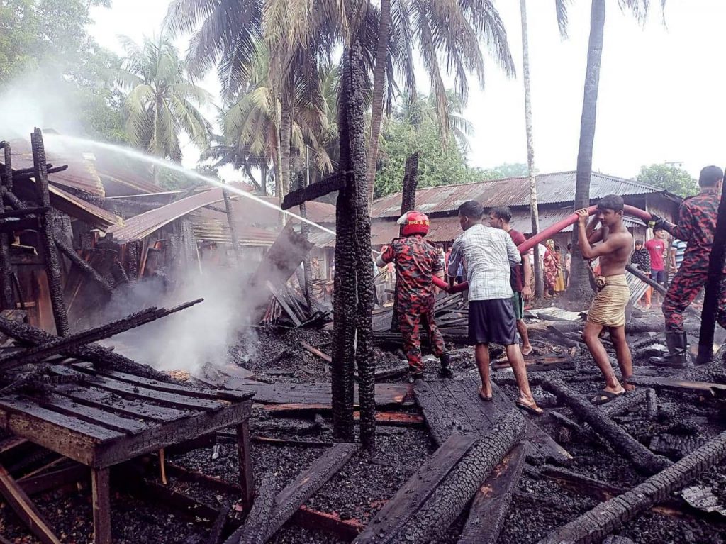 স্থানীয় ও ফায়ার সার্ভিস সূত্রে জানা যায়, ভোর চারটায় হঠাৎ কোন একটি দোকান থেকে আগুনের সূত্রপাত হয়ে মূহুর্তেই ছড়িয়ে পড়ে। তাৎক্ষণিক ফায়ার সার্ভিসকে খবর দিলে ফায়ার সার্ভিসের দুইটি ইউনিট তিন ঘন্টার প্রচেষ্টায় আগুন নিয়ন্ত্রণে আনতে সক্ষম হয়। এতে সাতটি দোকান ও পাঁচটি বসতঘর পুড়ে ছাই হয়ে যায়।