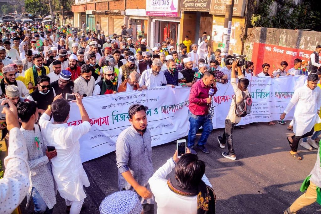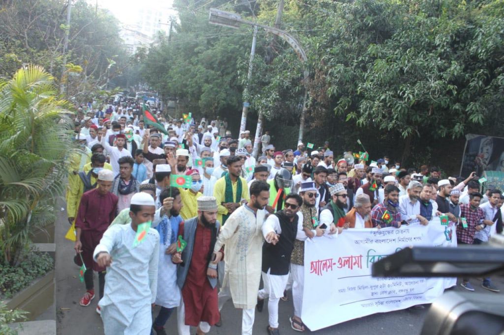এর আগে বিকাল ৩ টায় চট্টগ্রামের বিভিন্ন মাদ্রাসার হাজারোধিক আলেম-ওলামাকে সাথে নিয়ে জমিয়তুল ফালাহ মসজিদ থেকে বিজয় মিছিল শুরু হয়ে জামালখান প্রেসক্লাব চত্বরে শেষ হয়।