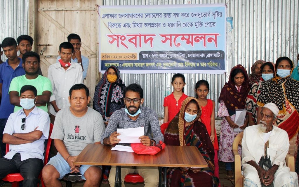 সংবাদ সম্মেলনে লিখিত বক্তব্যে বলা হয়, গত একমাস আগে মো. আলী জিন্নাহ ও তার পরিবার রাতারাতি পাকা দেয়াল নির্মাণ করে সেখানে লোহার গেইট দিয়ে জনসাধারণের চলাচলের রাস্তাটি বন্ধ করে দেয়। আর এই বিষয়ে এলাকাবাসী আপত্তি জানালে স্থানীয় জনপ্রতিনিধি বিষয়টি সমাধানে বৈঠকে বসলেও মো. আলী জিন্নাহ ও তার পরিবার বৈঠকে জনপ্রতিনিধিদের সামনে অশোভন আচরণ করায় তারা সকলেই চলে যায়। এই ঘটনার পর হতে মো. আলী জিন্নাহের নেতৃত্বে স্থানীয় এলাকাবাসীদের হামলা, মামলা দিয়ে হয়রানি করে চলেছে।