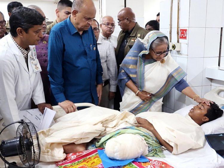 শিক্ষার্থীদের কোটা আন্দোলন ঘিরে সহিসংতায় আহতদের খোঁজ নিতে জাতীয় অর্থোপেডিক হাসপাতাল ও পুনর্বাসন প্রতিষ্ঠান (পঙ্গু হাসপাতাল) পরিদর্শন করেছেন প্রধানমন্ত্রী শেখ হাসিনা।