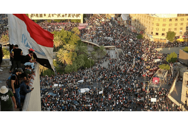 নিরাপত্তাবাহিনীর রক্তাক্ত অভিযান ও ধরপাকড় উপেক্ষা করে হাজার হাজার ইরাকি দেশটির রাজধানী বাগদাদের কেন্দ্রীয় তাহরির স্কয়ারে টানা তৃতীয় দিনের মতো বিক্ষোভ করছেন।