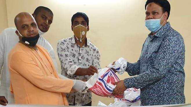 সোমবার (২০ এপ্রিল) শ্রী শ্রী গৌর নিতাই মন্দির ও শ্রী শ্রী রাধা মাধব মন্দিরের পক্ষ থেকে খাদ্যদ্রব্য গ্রহন করেন মন্দিরের সাধারণ সম্পাদক তারণ নিতানন্দ দাস ব্রহ্মচারী ও রত্নাবাহু মাধব দাস ।