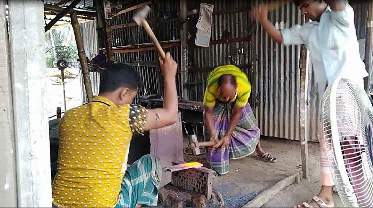 কয়লার দগদগে আগুনে লোহাকে পুড়িয়ে পিটিয়ে তৈরি করছেন সব ধারালো সামগ্রী। তবে এসব তৈরিতে এখনো আধুনিকতার কোন ছোঁয়া লাগেনি। পুরানো সেকালের নিয়মেই চলছে আগুনে পুড়ে লোহা হতে ধারালো সামগ্রী তৈরির কাজ। তবে দ্রব্য মূল্যের দাম কিছুটা বেশি এবং ঈদের এখনও বেশ কিছুদিন বাকি থাকায় জমে উঠেনি দা, কাচি, হাসুয়া, কোপা, ছুরি চাপাতির বেচাকেনা।