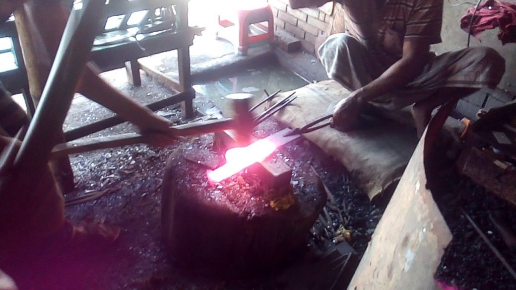 কয়লার দগদগে আগুনে লোহাকে পুড়িয়ে পিটিয়ে তৈরি করছেন সব ধারালো সামগ্রী। তবে এসব তৈরিতে এখনো আধুনিকতার কোন ছোঁয়া লাগেনি। পুরানো সেকালের নিয়মেই চলছে আগুনে পুড়ে লোহা হতে ধারালো সামগ্রী তৈরির কাজ। তবে দ্রব্য মূল্যের দাম কিছুটা বেশি এবং ঈদের এখনও বেশ কিছুদিন বাকি থাকায় জমে উঠেনি দা, কাচি, হাসুয়া, কোপা, ছুরি চাপাতির বেচাকেনা।