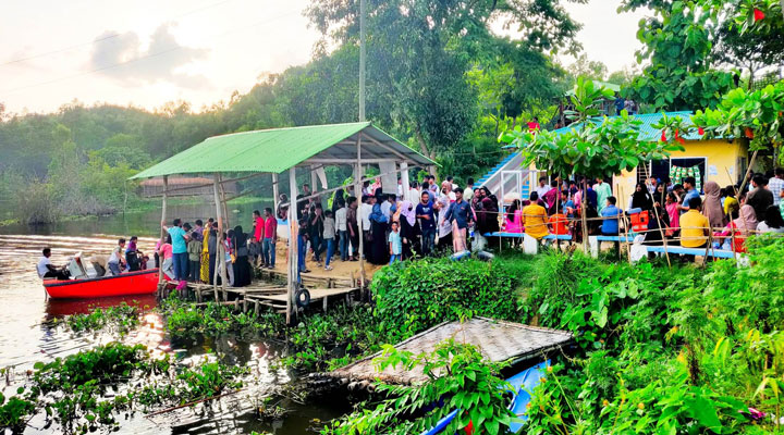 লোহাগাড়ার বিভিন্ন ইউনিয়ন ও পাশ্ববর্তী উপজেলা এবং শহর থেকে মোটরসাইকেল, প্রাইভেট কার, সিএনজি চালিত অটোরিকশা এবং বাস নিয়ে আসা পর্যটকদের উপচে পড়া ভিড়ে মুখরিত হয়ে উঠেছে লেকের চারপাশ।