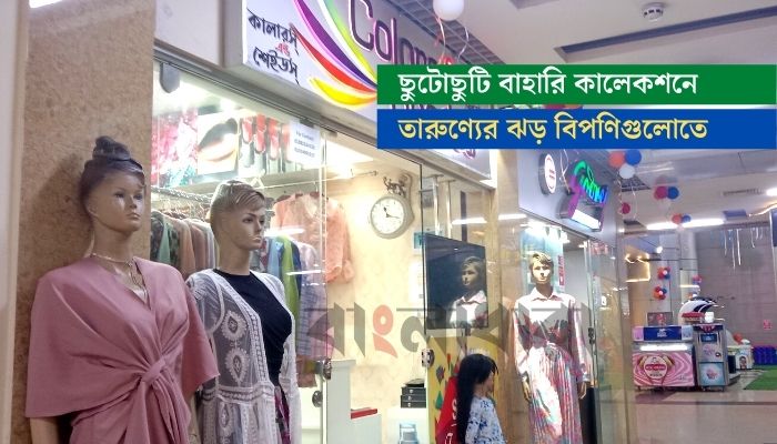 রমজান শেষে ঈদের আনন্দ। এটাই অপেক্ষা সবার। তবে এই আনন্দ অনেকটা পোশাক নির্ভরশীল হয়ে পড়েছে। ধনী, গরিব সবার মাঝে কাজ করছে পোশাকের বাহার। টিনেজ থেকে শুরু করে শিশুদের মধ্যেও পোশাকের বাহার কাজ করছে প্রতিনিয়ত। তবে প্রবীণ সমাজ এক সময় সাধাসিধে পোশাক নির্ভরশীল থাকলেও ডিজিটাল এ যুগে এসে তৃতীয় প্রজন্মের দেখাদেখি রঙিন পোশাকে অনেকেই নিজেদের সাজাতে চায়। ফলে টিনেজদের সঙ্গে ছুটছে প্রবীণরাও। বিভিন্ন শপিং মলের ডিসপ্লেতে পছন্দসই পোশাক পাওয়া না গেলে ইন্ডিভিজুয়্যাল শো রুমগুলোতে হুমড়ি খেয়ে পড়ে পছন্দের পোশাকের জন্য।