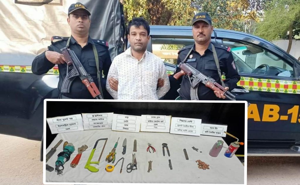 কক্সবাজারের উখিয়ার পালংখালী এলাকায় দেশীয় অস্ত্র তৈরির কারখানা হতে অস্ত্র তৈরির বিভিন্ন সরঞ্জামাদি ও অস্ত্রসহ কারিগরকে গ্রেফতার করেছে র্যাব-১৫’র সদস্যরা।