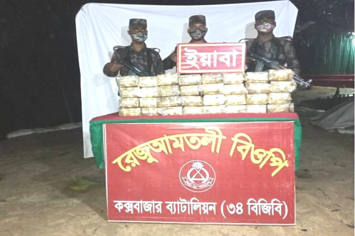 কক্সবাজার ৩৪ বিজিবির কমান্ডার লে. কর্ণেল আলী হায়দার আজাদ আহমেদ এ তথ্য নিশ্চিত করেছেন। তিনি জানান, গোপন সংবাদে খবর আসে মিয়ানমার থেকে ইয়াবার একটি বিশাল চালান রেজু আমতলী বিওপি’র আওতাধীন গোলডেবার পাহাড় দিয়ে দেশে ঢুকছে। এমন খবরে কক্সবাজার ব্যাটালিয়ন (৩৪ বিজিবি) এর অধীনস্থ রেজুআমতলী বিওপি’র একটি চৌকস টহল দল গোলডেবার পাহাড় নামক স্থানে কৌশলগত অবস্থান নিয়ে ফাঁদ পেতে থাকে। রাত ৮ টার দিকে কতিপয় ইয়াবা পাচারকারীরা বিজিবি টহলদলের উপস্থিতি টের পেয়ে বিজিবি টহল দলের উপর অতর্কিতভাবে গুলি বর্ষণ করতে থাকে। বিজিবি টহলদল কৌশলগত অবস্থান নিয়ে জান-মাল এবং সরকারি সম্পদ রক্ষার্থে চোরা কারবারিদের লক্ষ্য করে এক রাউন্ড পাল্টা ফায়ার করলে চোরাকারবারিরা তাদের সাথে থাকা ব্যাগ মাটিতে ফেলে দ্রুত পাহাড়ের গহীন জঙ্গলের মধ্য দিয়ে মায়ানমারের দিকে পালিয়ে যায়। চোরাকারবারীদের ফেলে যাওয়া ব্যাগ তল্লাশি করে ৩ লাখ ২০ হাজার পিস বার্মিজ ইয়াবা পাওয়া যায়। এ ব্যাপারে যথাযথ আইনানুগ ব্যবস্থা গ্রহণ করা হচ্ছে।
