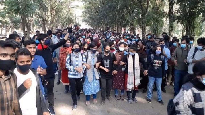 অন্যদিকে আজ সোমবার (১৭ জানুয়ারি) সকাল ৯টা থেকে ক্যাম্পাসে বিক্ষোভ শুরু করেছেন শিক্ষার্থীরা। এতে শিক্ষার্থীরা স্লোগানে বলেন, ‘স্বৈরাচারের বিরুদ্ধে, ডাইরেক্ট একশন’, ‘পতন পতন পতন চাই, উপচার্যের পতন চাই’, ‘ভিসির গদিতে, আগুন জ্বালাও একসাথে’, ‘যেই ভিসি বোমা মারে, সেই ভিসি চাই না’, ‘যেই ভিসি গুলি মারে, সেই ভিসি চাই না’।