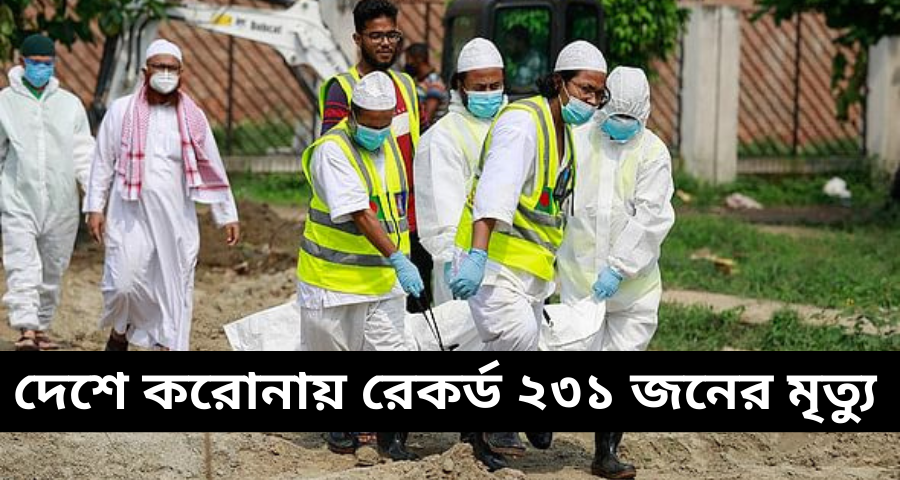 গত ২৪ ঘণ্টায় দেশে করোনাভাইরাসে আক্রান্ত হয়ে মৃত্যুবরণ করেছে ২৩১ জন। এর আগে করোনায় এক দিনে এত মৃত্যু দেখেনি বাংলাদেশ। এ নিয়ে মোট মৃতের সংখ্যা বেড়ে দাঁড়িয়েছে ১৮ হাজার ১২৫ জনে।