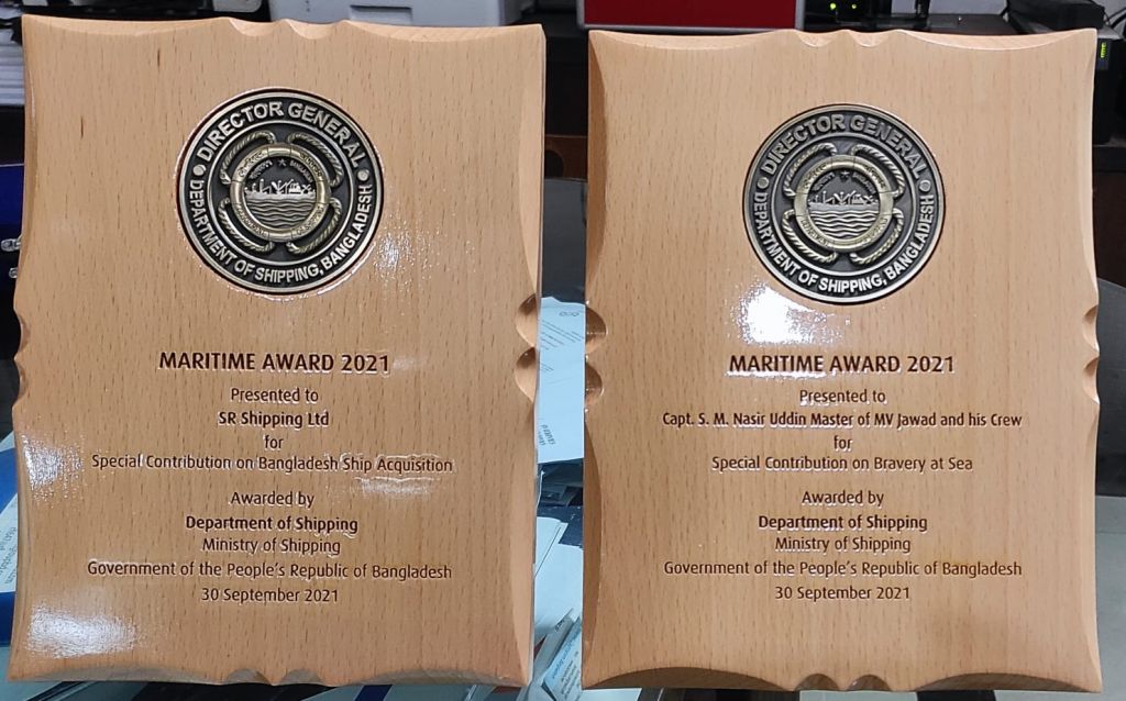 গভীর সমুদ্র থেকে এক ভারতীয় জেলেকে ভাসমান অবস্থায় জীবিত উদ্ধারের জন্য ‘সমুদ্রে সাহসিকতায় বিশেষ অবদানের স্বীকৃতি’ হিসেবে এমভি জাওয়াদের ক্যাপ্টেন এসএম নাছির উদ্দিন ও ক্রুদের এবং আন্তর্জাতিক সমুদ্র রুটে ‘জাহাজ অধিগ্রহণে বিশেষ অবদানের স্বীকৃতি’ হিসেবে অ্যাওয়ার্ড দেওয়া হয় এসআর শিপিং লিমিটেডকে।