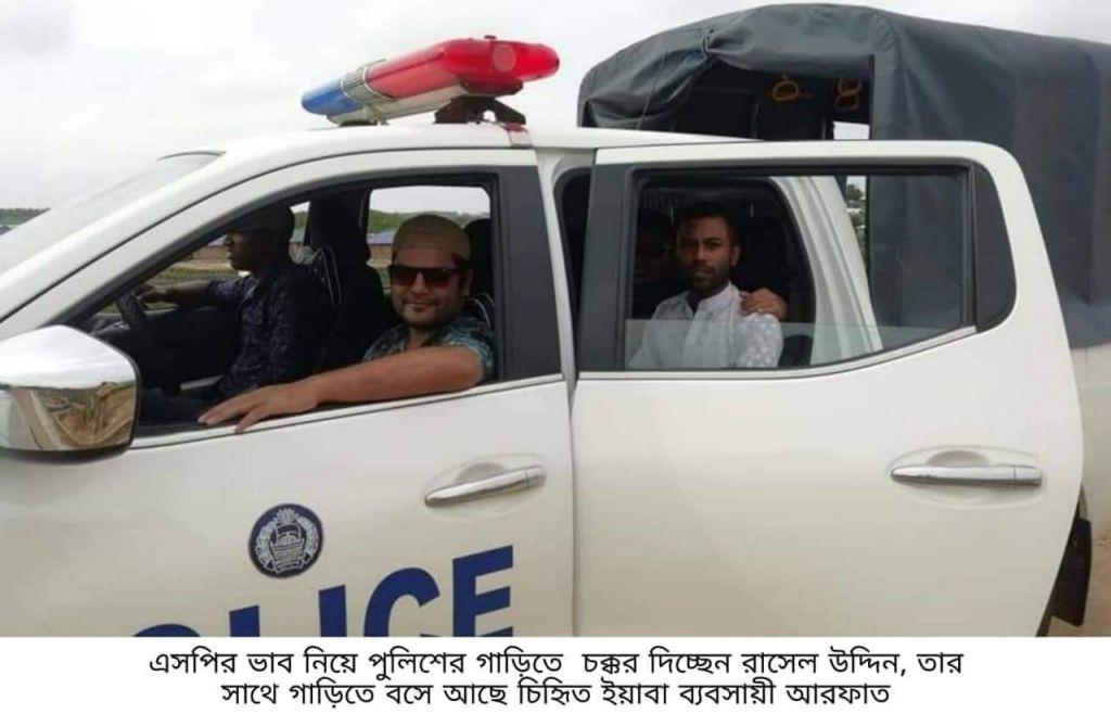 অভিযোগ আছে, কক্সবাজারের বেশিরভাগ পুলিশ অফিসারদের সঙ্গে চলে-বলে কৌশলে সম্পর্ক করে রাসেল গ্যাং আইনের আওতায় আসা দূরে থাক, উল্টো বিভিন্ন সময় এসপির ভাব নিয়ে পুলিশের গাড়িতে চক্কর দিয়ে নিজের ক্ষমতা জানান দিতেন। পুলিশের গাড়িতে চক্করে তার সঙ্গী হন কক্সবাজারে চিহ্নিত ইয়াবা কারবারিরাও। পুলিশের গাড়িতে চক্কর দেয়ার বেশ কয়েকটি ছবি প্রতিবেদকের কাছে সংরক্ষিত আছে। শুধু তাই নয়, পুলিশ অফিসারদের সঙ্গে নিয়মিত একান্ত বৈঠক, জন্মদিন পালন কিংবা জুম মিটিংয়ের ছবিও প্রকাশ পেয়েছে। এসব ছবি রাসেলের ফেসবুক অ্যাকাউন্টে পোস্ট হওয়া থাকলেও ধর্ষণকান্ডে অভিযুক্ত হবার পর তার মুচে দিয়েছেন ঈদগাঁওর পোকখালী সিকদার পাড়ার লোদা মিয়ার ছেলে রাসেল উদ্দিন।