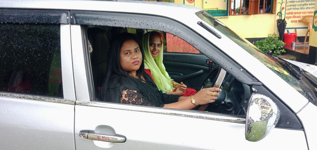 এক হাতে স্টিয়ারিংয়ে বোন,